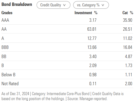 For example, Morningstar shows the following breakdown for iShares Core Total USD Bond Market ETF (IUSB):